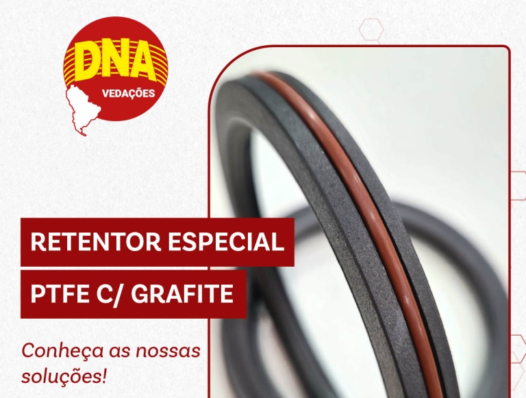 RETENTOR ESPECIAL – PTFE C/ GRAFITE. Usinado em Torno CNC, esse retentor especial é aplicado em sistemas rotativos, com pouca ou isento de lubrificação. É